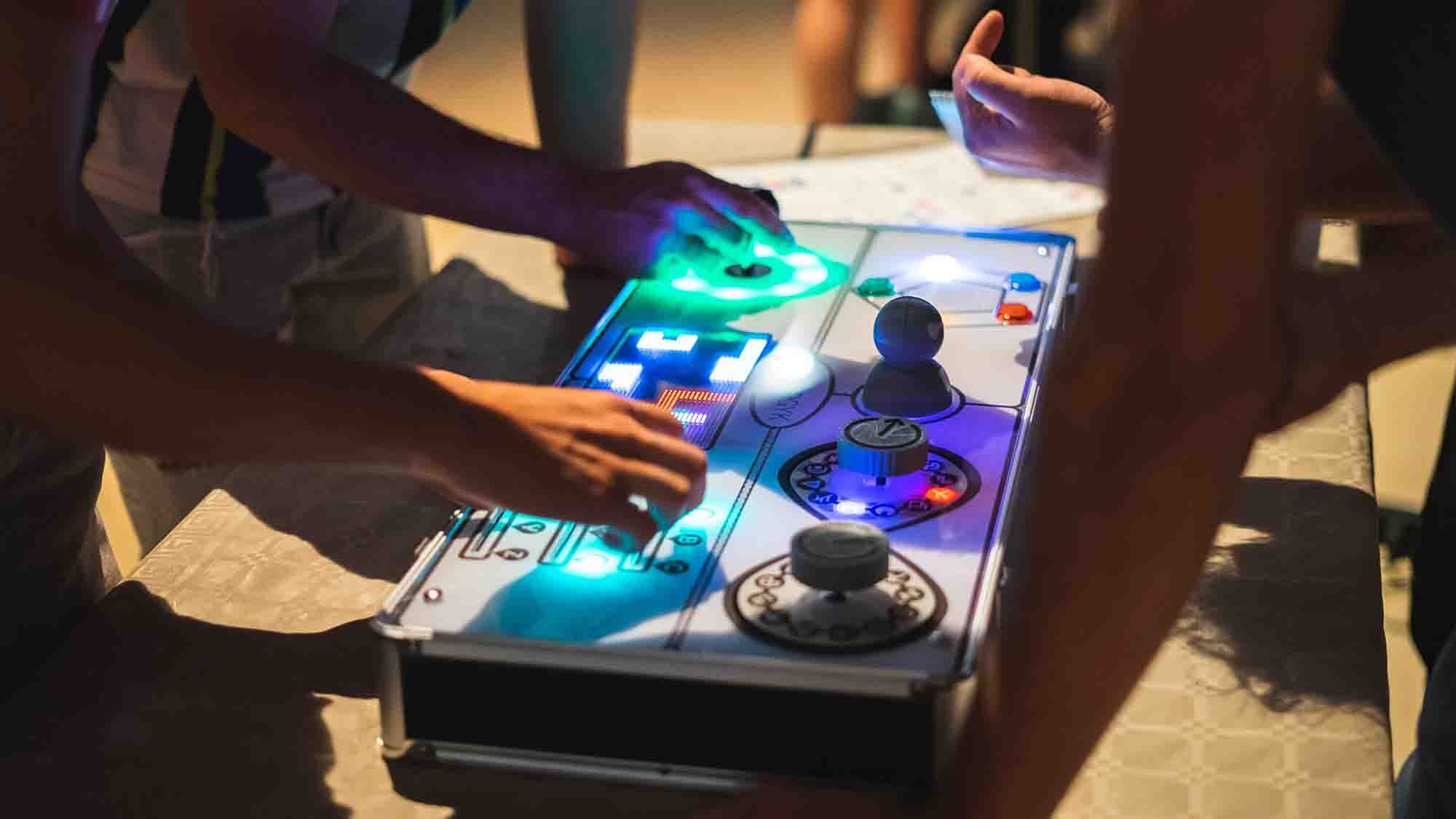 Interactions with the game are done via electronic components such as buttons, joysticks, or LEDs, creating a unique user experience.